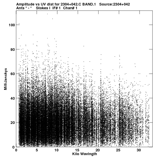 angle, the approximate noise level in prefixed units of Jansky, and a