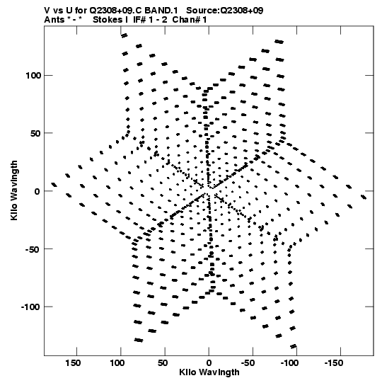 • Links is a collection of links that will show you the GIF uv-coverage and visibility plot for this data set in pop-up windows. See the README file on how to interpret these plots. They'll also get you to the project pipelining scripts and information log files as well as the full multi-source archive data on this project.