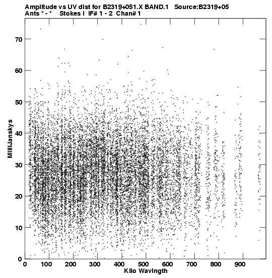 angle, the approximate noise level in prefixed units of Jansky, and a
