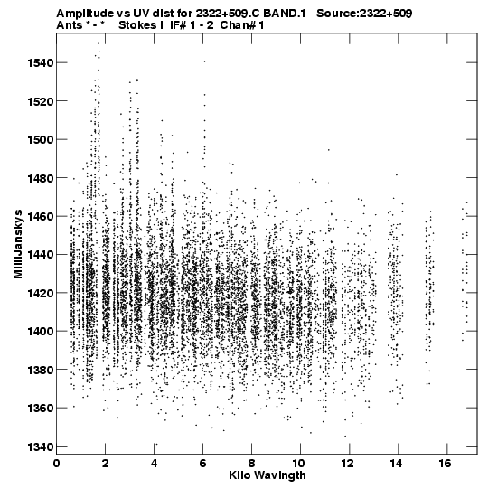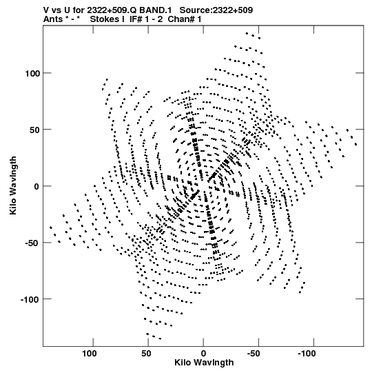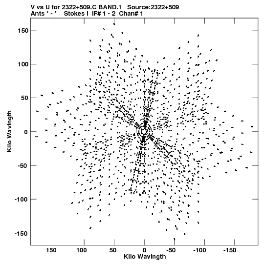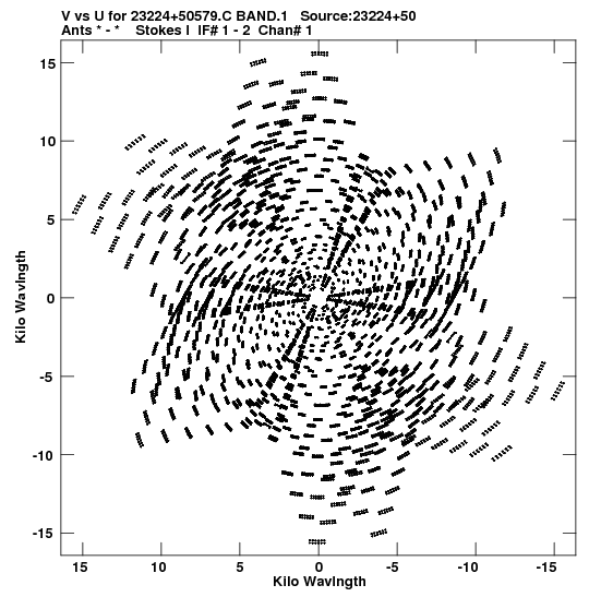 • Links is a collection of links that will show you the GIF uv-coverage and visibility plot for this data set in pop-up windows. See the README file on how to interpret these plots. They'll also get you to the project pipelining scripts and information log files as well as the full multi-source archive data on this project.
