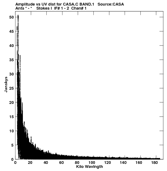• UV Info lists the observed polarizations, shortest and longest VLA-arms (D=1km, C=3km, B=11km, A=36km, P=Pie Town link=75km), number of antennas used in the observation (though some may have been flagged as bad), the subarray setting of the array (1-5), a link to the calibrated single source uv FITS file and it's size (in red).