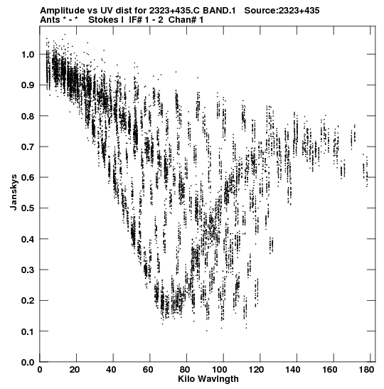 angle, the approximate noise level in prefixed units of Jansky, and a