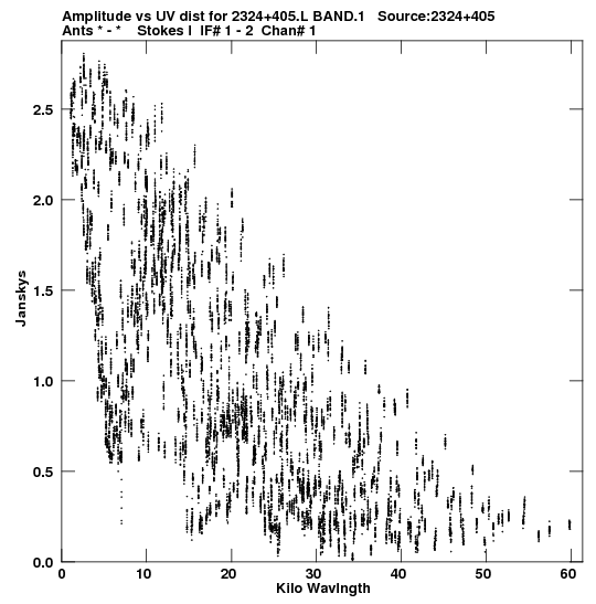 • Links is a collection of links that will show you the GIF uv-coverage and visibility plot for this data set in pop-up windows. See the README file on how to interpret these plots. They'll also get you to the project pipelining scripts and information log files as well as the full multi-source archive data on this project.