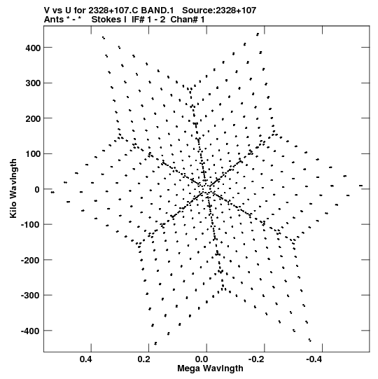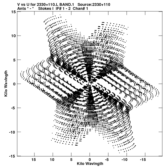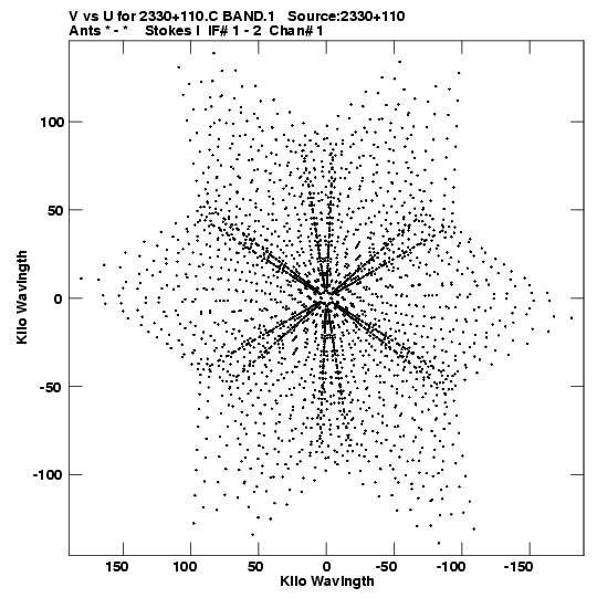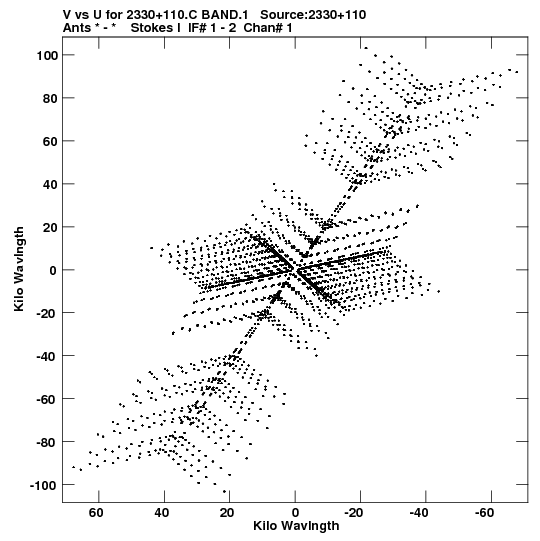 • Links is a collection of links that will show you the GIF uv-coverage and visibility plot for this data set in pop-up windows. See the README file on how to interpret these plots. They'll also get you to the project pipelining scripts and information log files as well as the full multi-source archive data on this project.