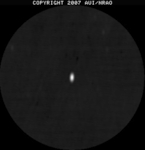 • JPEG shows a thumbnail of the pipeline image. Clicking it will show you a larger version in the browser. Both JPEG images have a square transfer function to emphasize the lower levels a bit more; do not use the JPEGs for scientific purposes (see next). As a guideline, the lighter a thumbnail, the less difference between the peak flux density and the rms noise level, i.e., don't expect to see too much in in light gray images, especially if the rms noise given in the next column is in the order of microJy or less. On the other hand, dark images have a strong source in there somewhere.. (try looking in the center of the image).