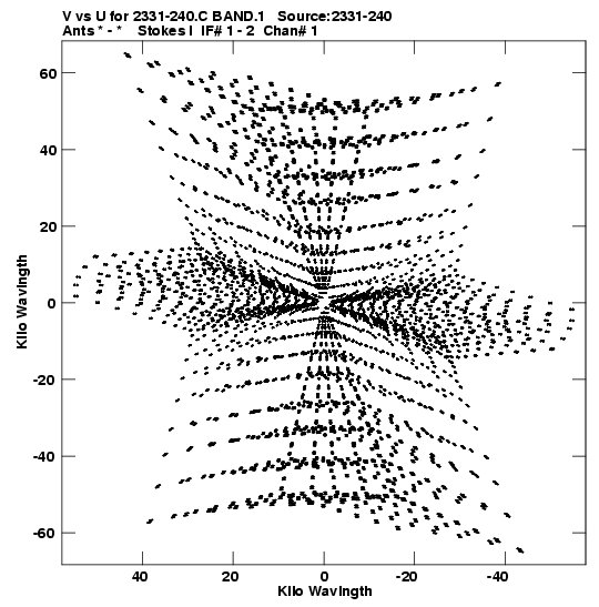 • Links is a collection of links that will show you the GIF uv-coverage and visibility plot for this data set in pop-up windows. See the README file on how to interpret these plots. They'll also get you to the project pipelining scripts and information log files as well as the full multi-source archive data on this project.