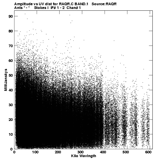 angle, the approximate noise level in prefixed units of Jansky, and a