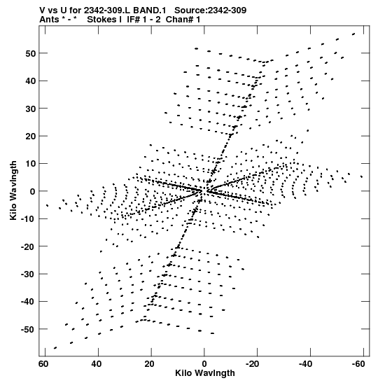 • Links is a collection of links that will show you the GIF uv-coverage and visibility plot for this data set in pop-up windows. See the README file on how to interpret these plots. They'll also get you to the project pipelining scripts and information log files as well as the full multi-source archive data on this project.
