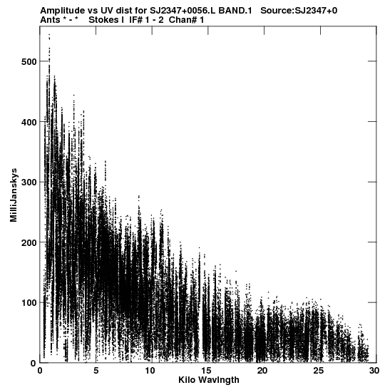 angle, the approximate noise level in prefixed units of Jansky, and a