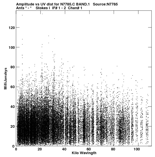 angle, the approximate noise level in prefixed units of Jansky, and a